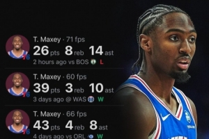 在赛季的前五场比赛中,马克西场均能得到35.2分,上一个赛季前五战场均得分高于他的还是2019年的哈登(场均36.6分)。