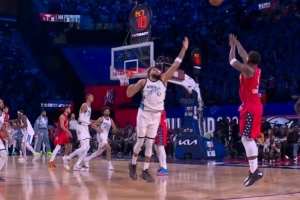 体育资讯2月16日讯 今日NBA全明星正赛,世界队35-37不敌美国新星队。