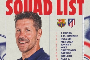 马竞客战巴萨名单:阿尔瓦雷斯、格列兹曼、卢克曼、阿尔马达在列