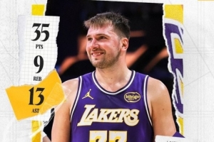 赛后湖人官方发布东契奇数据海报:“对于卢卡来说又一个表现出色的夜晚。”