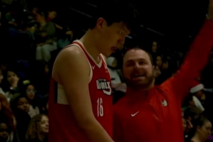 GIF-现场回放杨瀚森连进两球