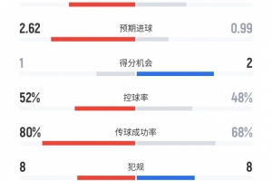 预期进球:2.62比0.99
