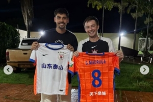 趁着假期,泰山球员马德鲁加回到巴西,他与里奥布里朗蒂市市长Lucas Foroni等多人一起踢球,Lucas Foroni在个人社媒晒照,他获赠一件马德鲁加的泰山球衣。